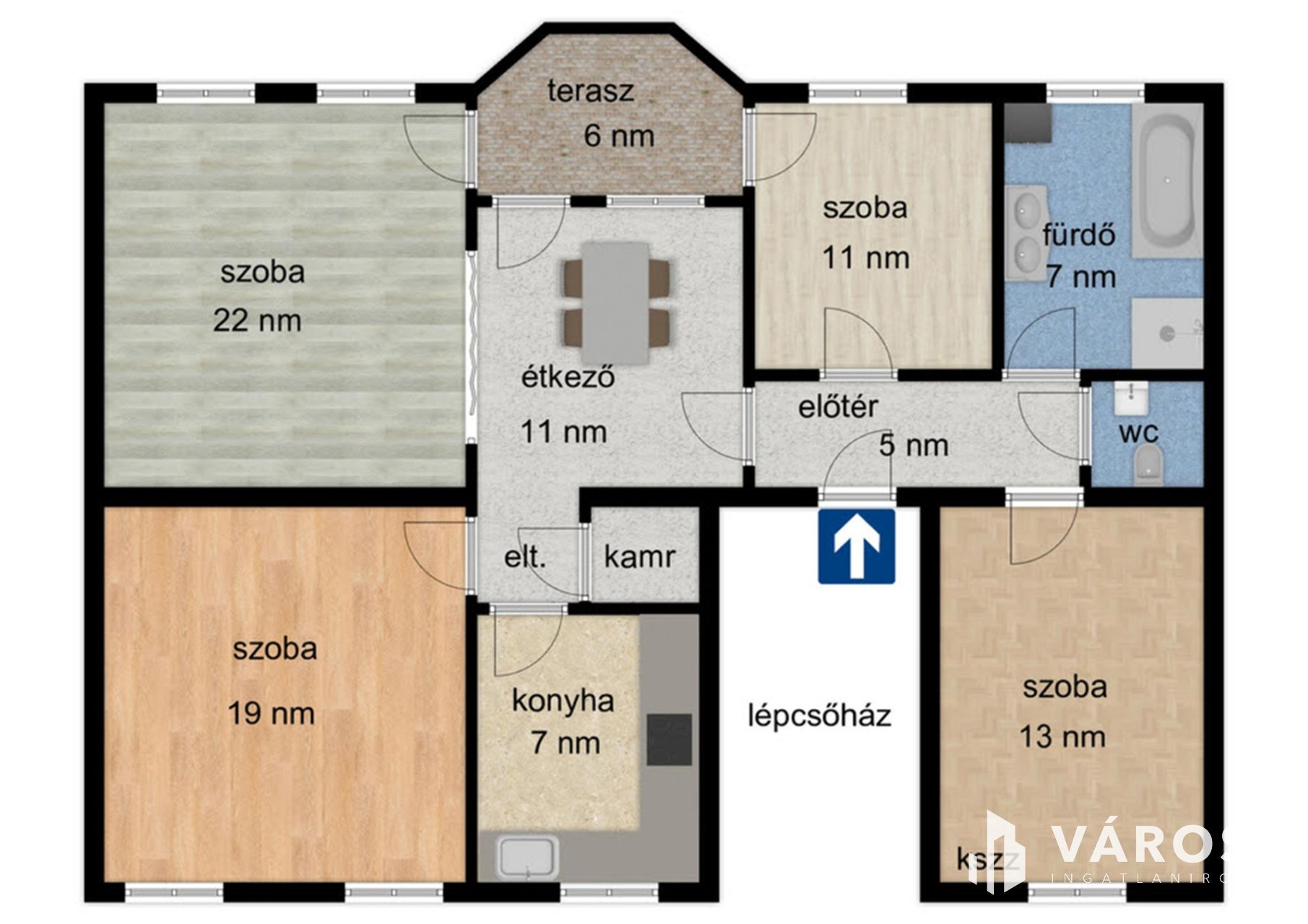 - 99,6 nm-es hasznos alapterület.