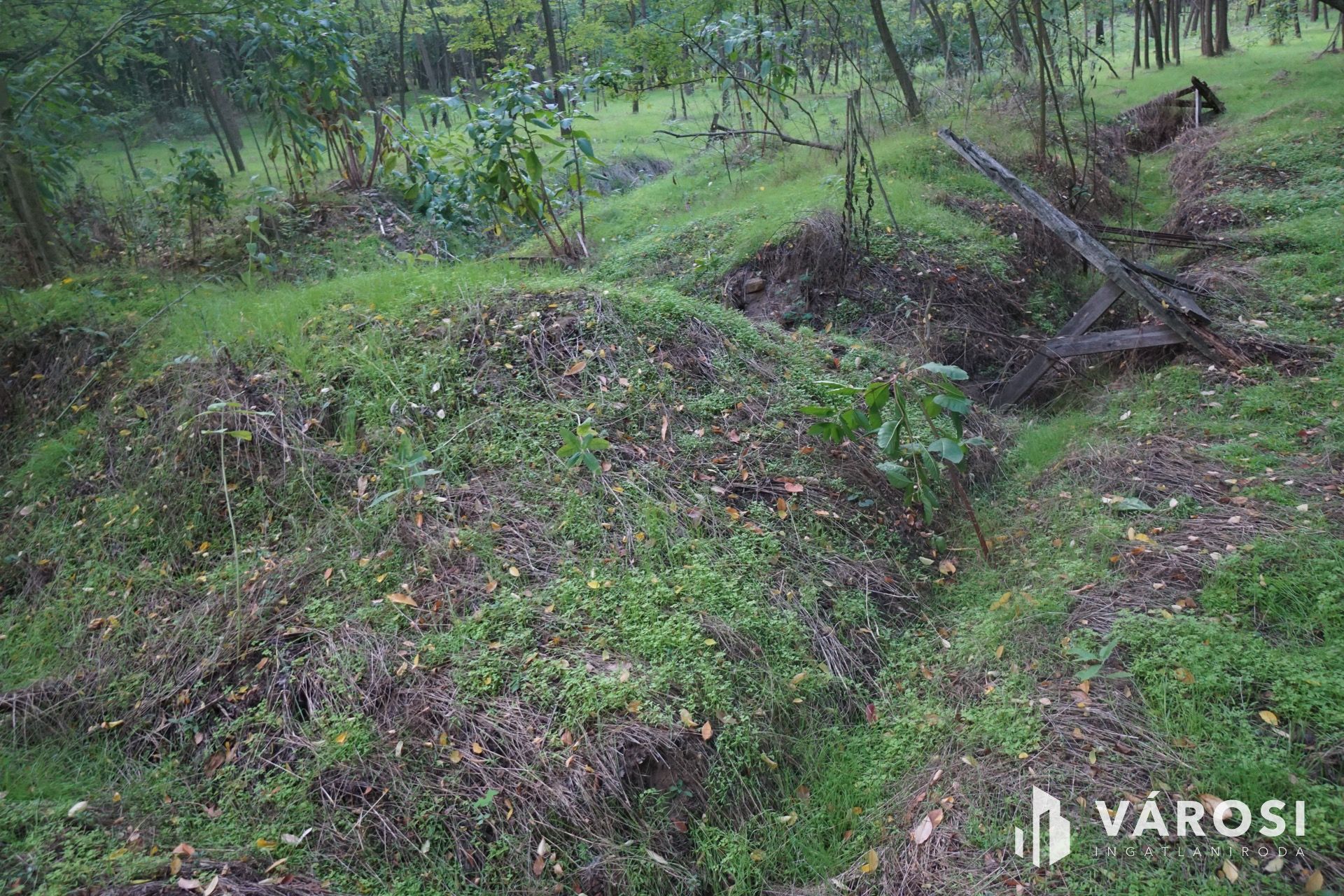 A telek nagy részén akác és egyéb fák találhatók.