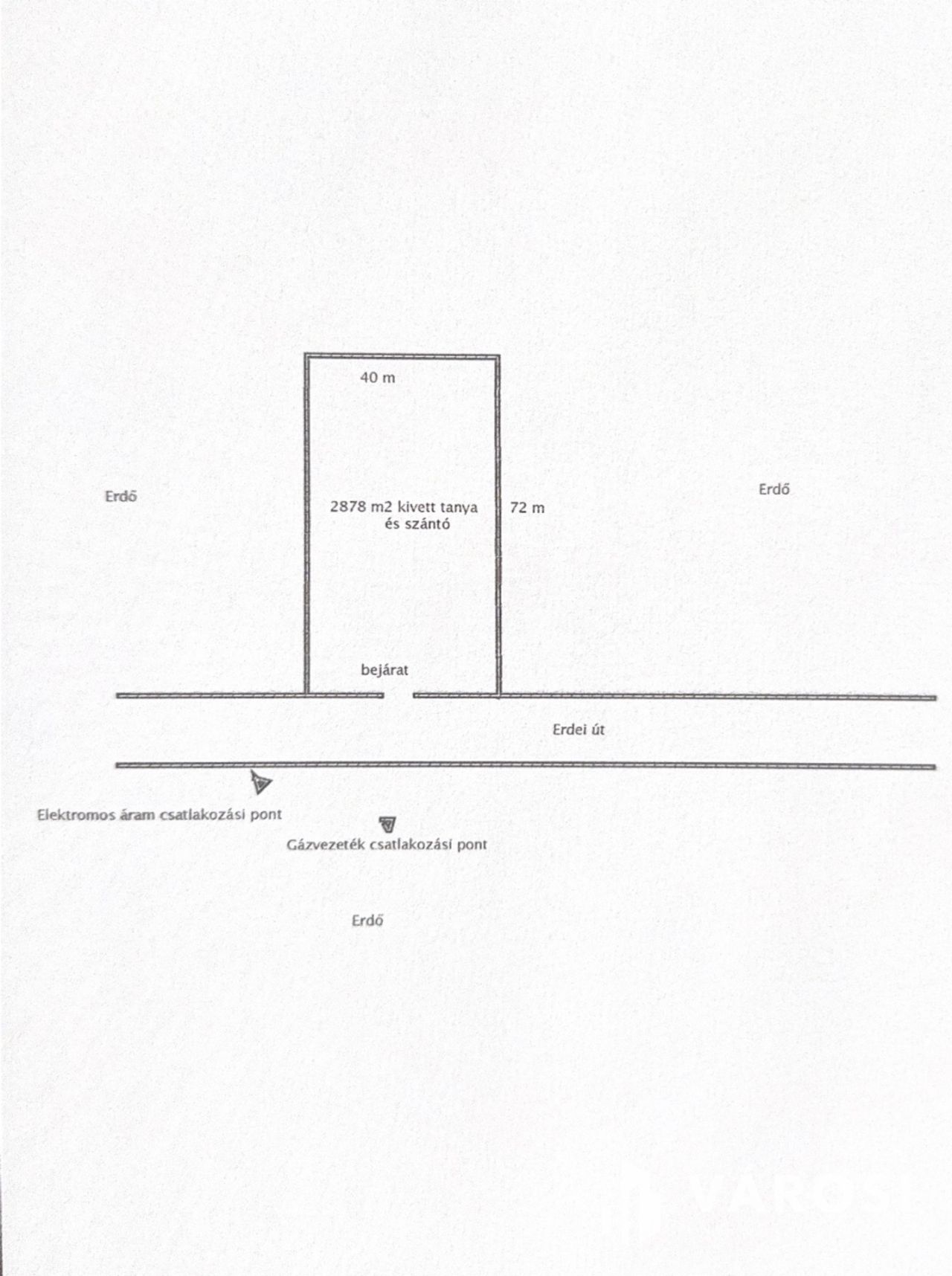 A telek sarkától 10 m-re van áram csatlakozási lehetőség.