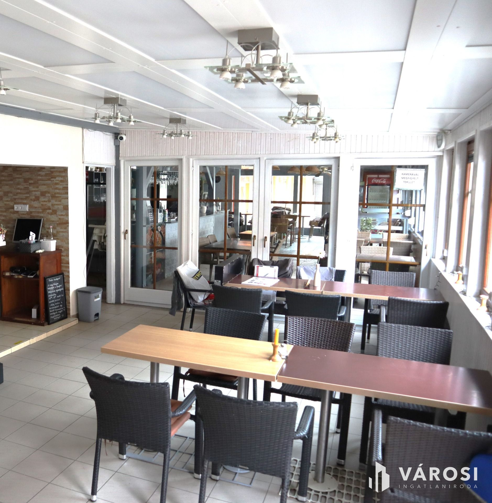 A 120 m²-es két szintes épület kiváló állapotban van, mivel az évek során folyamatosan karbantartották és felújították. A földszinten elhelyezkedő jelenleg pizzériaként működő vendéglátóhely felszerelt konyhával (teljes technológiával, HACCP minősítéssel) és berendezett vendégtérrel rendelkezik, amely a vételár részét képezi.