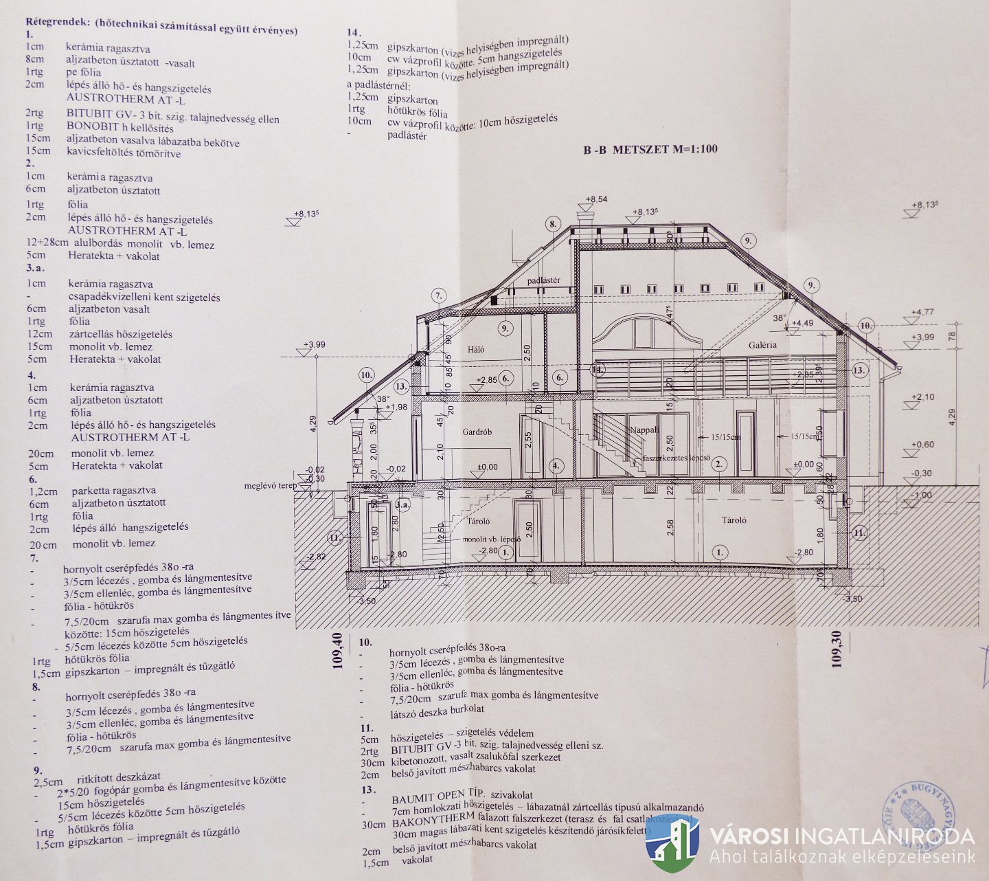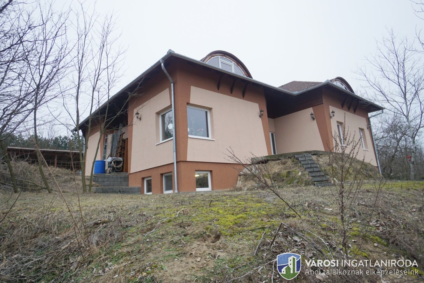 A területből 9278 nm részben lekerített építési terület, rajta 65 %-os készültségű 342 nm-es családi házzal.