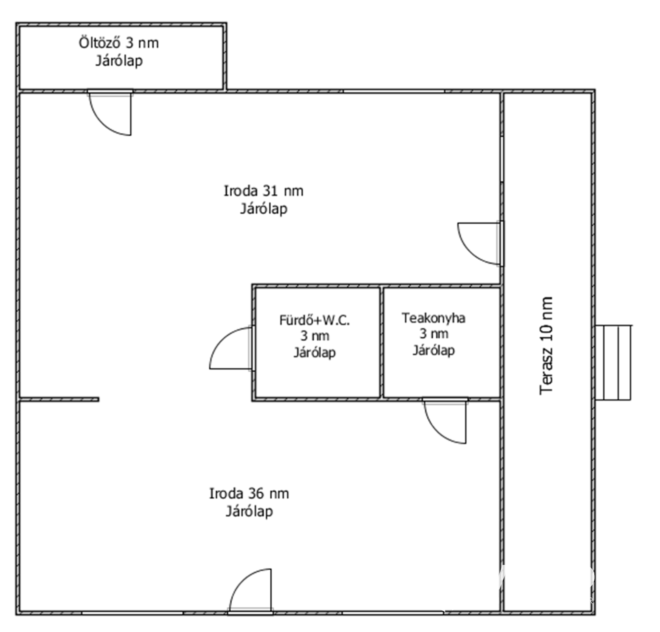 Az ingatlanban üzlettér, teakonyha, zuhanyzós fürdőszoba és öltöző található.