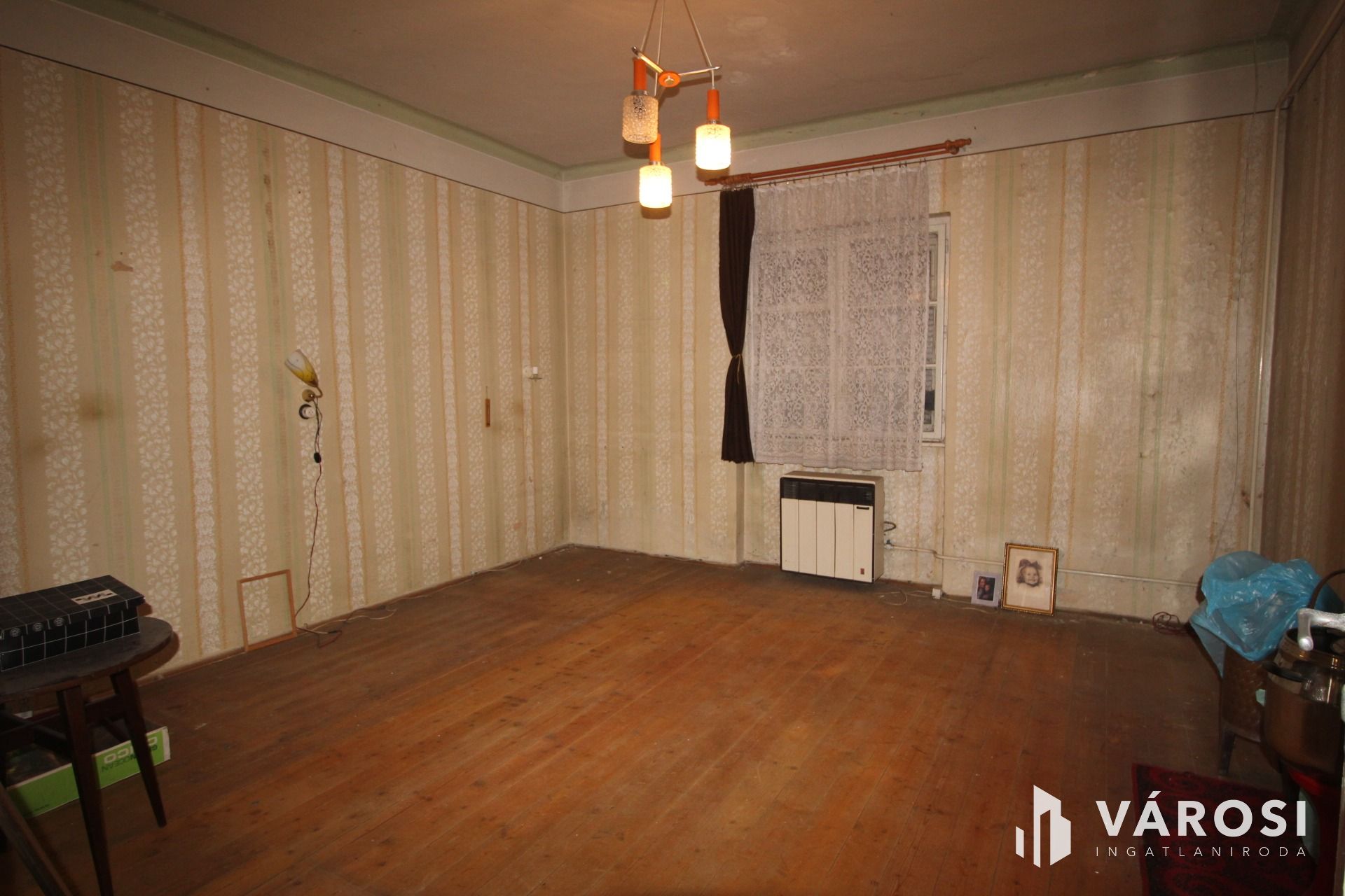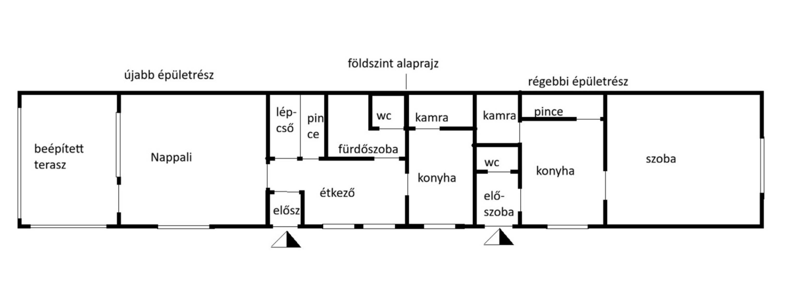 És az első (utca felőli), 1940-es években téglából épült, felújítandó állapotú 1 szoba+konyha épületrészből.