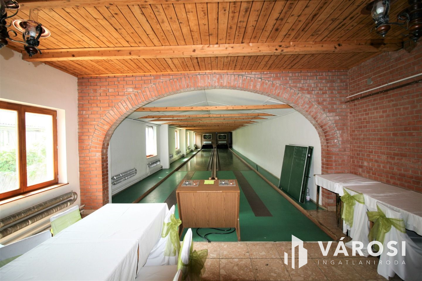 Az ingatlanhoz tartozik még egy teke (kettő pályás) pálya ahol újabb 60 fős vendégtér várja az odalátogatókat.
