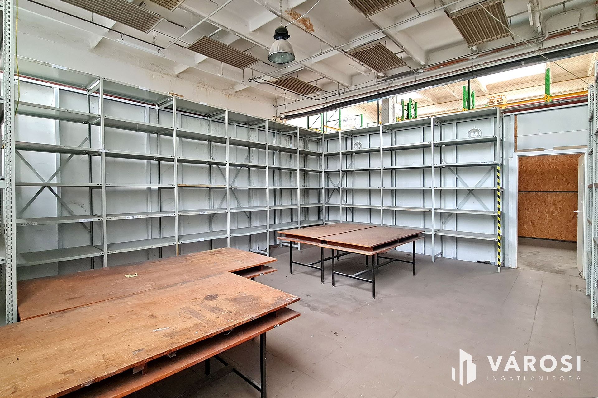 A raktárterület 550-630 cm belmagasságú.