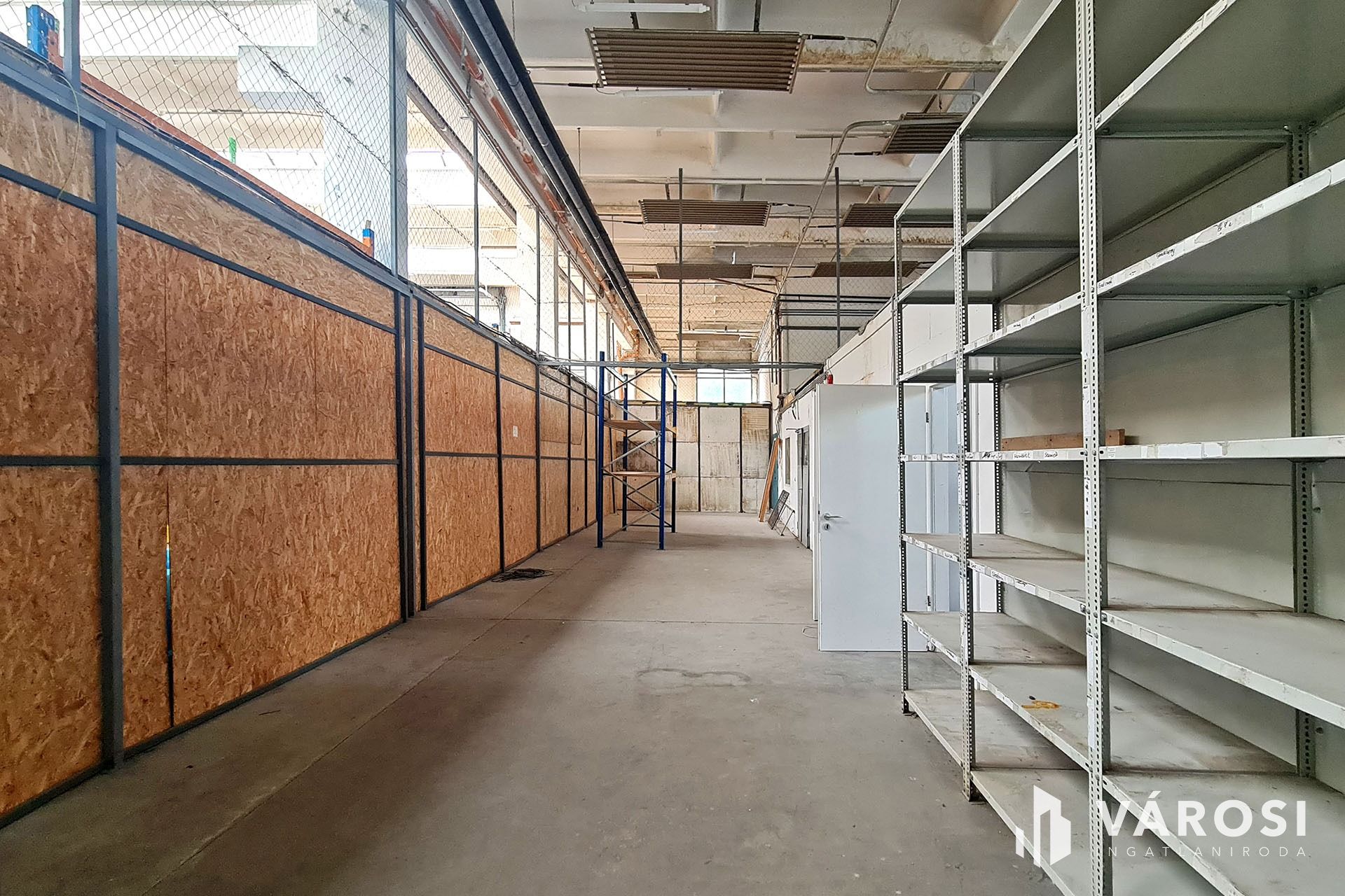 Az össz. terület 129 m2, amiből le lett választva 1db nagyobb raktár és 1 db polcos raktár. Amennyiben nincs szükség a polcokra, anélkül is bérbe vehető.