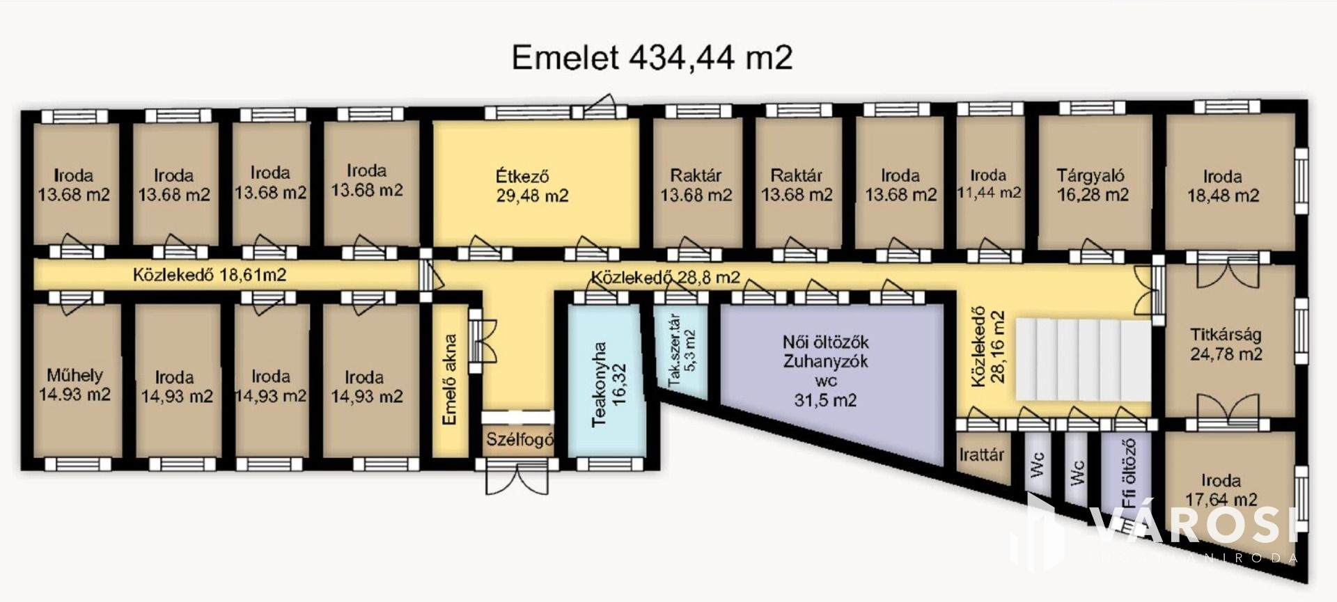 Szintenként vagy egyben is kiadó, az emeletek szeparálhatóak is szükség esetén.