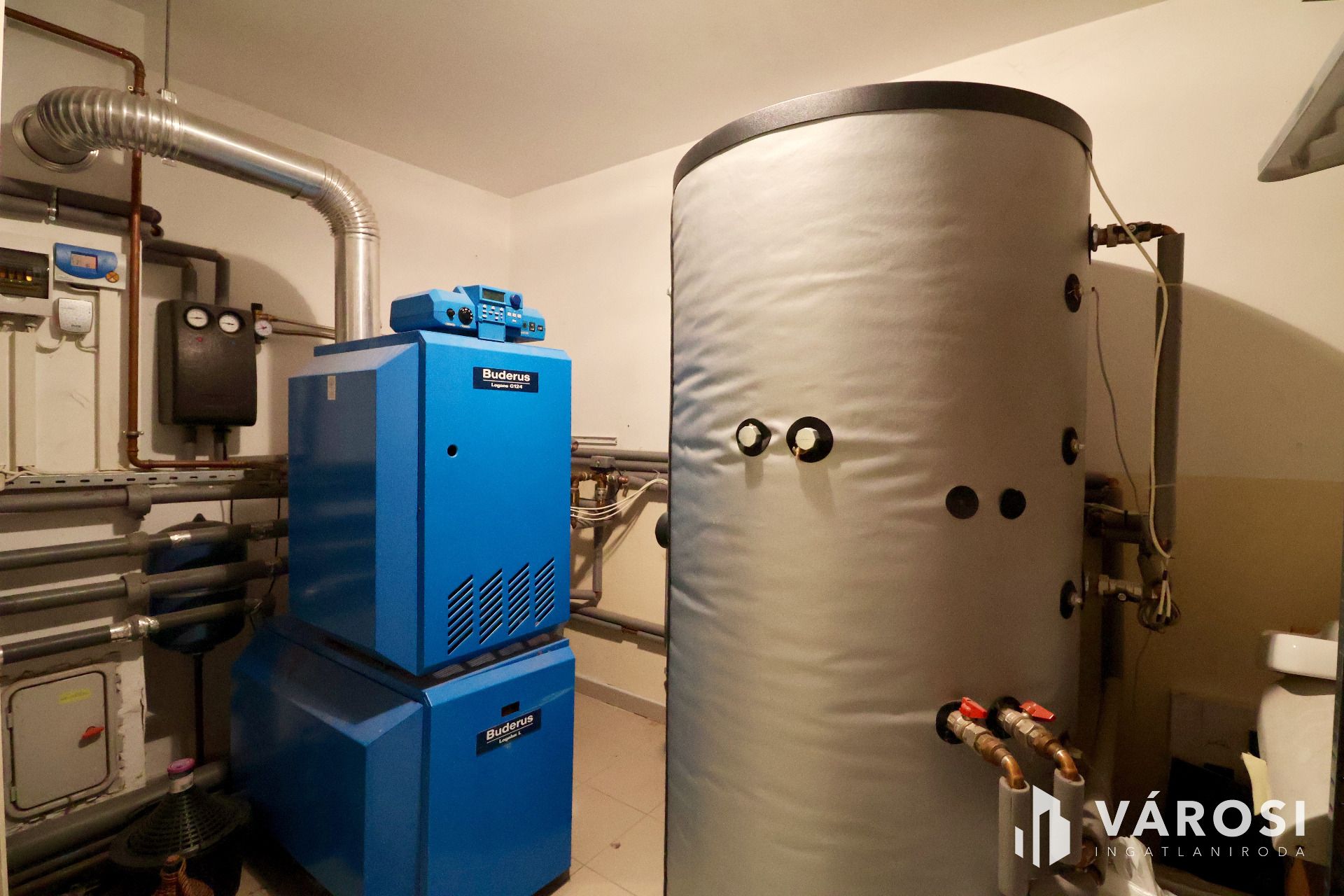 The ~58.00 m2 covered, paved terrace - with an outdoor barbecue - increases the usability of the living space. The two-car garage is ~44.00 m2. Central heating is provided by a Buderus Logano G 124 boiler - with reduced harmful emissions, fully automatic operation.