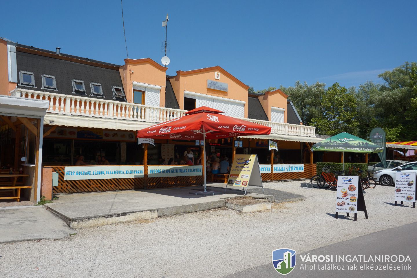 Kiváló befektetési ingatlan, több lehetősséggel, akár magánszemélyeknek akár vállalkozóknak !!! Jelenleg is nagyon jól működő komplett vendéglátó egység vált eladóvá, a Balaton déli partján, a vízpart melletti szabadstrand közvetlen szomszédságában. Az ingatlanat tulajdonosa 2004-ben építette, a lehető legjobb, legforgalmasabb csomópontba ahol, mind a gyalogos mind a gépkocsi és a teljes balatoni biciklis körűt találkozik. Jelenleg az ingatlanban, az itt megálló és strandról érkező vendégek kiszolgálása történik, teljes meleg konyhai kínálattal, (természetesen Uniós engedélyekkel), valamint teljes italválasztékkal. Ezen tevékenység az alsó szinten működik. Az épület 2 szintből áll. A jelenlegi alsó szint: vendéglátó egység, játékterem: 180m2-es hasznos területtel bír, amelyhez tartozik egy 180m2-es utcafronti fedett (150/fő befogadására alkalmas) és egy 40m2-es szintén fedett hátsó terasz is. A felső szint 191m2-es, mely jelenleg üzleti tevékenységre nincs használva (személyzeti szállás, iroda, raktár). Az ingatlan teljes közművel rendelkezik. A teljes felső szint lehűtésében ipari klíma segédkezik. Az épület elhelyezkedését, alakíthatóságát nézve, kiváló lehetőség lehet esetleg egy apartmanház kialakítására is. Helyiséglista: földszint: játékterem, előtér, 2 terasz, 4 wc, férfi mosdó, női mosdó, mozgáskorlátozott wc, göngyöleg raktár, közlekedő, raktár, konyha+tálaló, előkészítő helyiségek, hűtőkamra, mosogató. Felső szint: játékterem, raktárak, 2 apartman fürdővel mellékhelyiséggel, női-férfi mosdó, iroda. A tulajdonosok nagyon segítőkészek, ha komoly ügyfél jelentkezik, aki tovább szeretné folytatni a vendéglátó tevékenységet, akkor a forgalommal kapcsolatban több éves infókkal tudják ellátni az érdeklődőt. FONTOS: a gépesítést, berendezést az ár nem tartalmazza. Ha Ön szeretne egy jól menő vállalkozást, aminek az alapjai le vannak fektetve és csak tovább kell vinni, akkor megtalálta a magához illőt. A hirdetésben feltüntetett ár, nettóban értendő!
