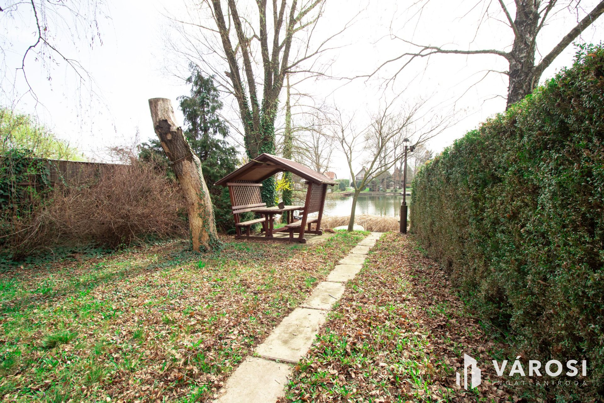 Az ingatlanhoz tartozó telek rendezett, fás, borkos terület, a part és az utca felől is diszkét pihenést biztosít.