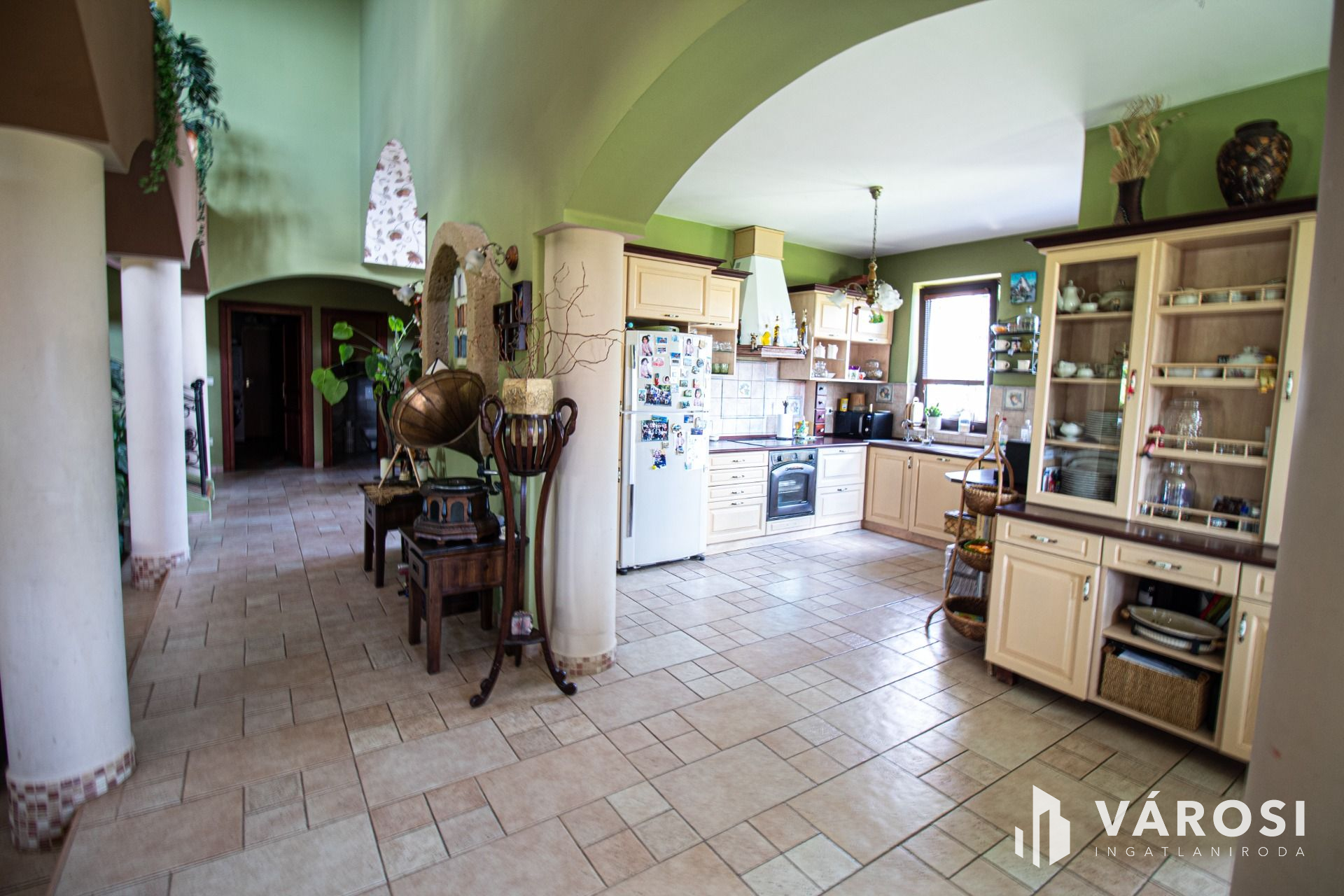 A tulajdonosok a megépítés során minden részletre odafigyeltek és a teljes építkezést felügyelték. A ház 38-as Phorotherm téglából épült, mely nemes vakolattal lett ellátva, a tető pedig Terrán héjazatot kapott. Az ingatlan belső kialakítását nézve a nagy terek dominálnak, hisz minden helyiség a nappaliból belátható. Az ingatlanba belépve egy szép, tágas előszobába érkezünk, mely térből már láthatóvá válik a belső szinteltolás is, ami szintén a mediterrán stílus jelképe. Ezen helyiségből továbbhaladva, tudjuk egy egyedi ívelt lépcsőn megközelíteni a felső szintet, amely 3 külön bejáratú szobából egy külön fürdőből és egy külön mellékhelyiségből áll. Mind 3 szobához teraszkapcsolat tartozik. Az alsó szintre visszatérve, található 2 külön bejáratú szoba, egy nagy légtérrel rendelkező nappali konyha étkező szintén teraszkapcsolatokkal. A ház tájolásának köszönhetően amely kelet-nyugat-dél a nap minden szakában a beltér fényáradatban úszik. A szigetelésről műanyag nyílászárok fa színben gondoskodnak. Az árnyékolást, exotikus gőzölt fa reluxák oldják meg. A meleg nyári napok lehűtésében, több beltéri klíma segédkezik. A hideg téli napok kifűtésében és a meleg víz előállításban, egy nagy teljesítményű cirkó kazán, használati melegvizes tartállyal összekapcsolva, radiátorokon és padlófűtésen keresztül gondoskodik, ezzel szolgálva a bent lakók kényelmét. A nappali hangulatát tovább fokozza, a központilag elhelyezett fa tüzelésű cserépkályha is amelynek melege, a fa ropogása szintén hozzájárul a lakrész téli nyugalmához. A ház belső hangulatát, a teraszra kilépve is érezhetjük, a felfuttatott szőlőnek és a szép igényes kertnek köszönhetően. A terasz adottságai nagyobb családi rendvények, partik megrendezésének tökéletes helyszíne. Gépkocsikkal való parkolás a dupla garázsban megoldott ami kapcsolatban van a belső lakrésszel is. A lakók biztonságára riasztó rendszer vigyáz, mely a nem kívánatos mozgás illetve ajtónyitás esetén azonnal jelez a távfelügyeleti cégnek.