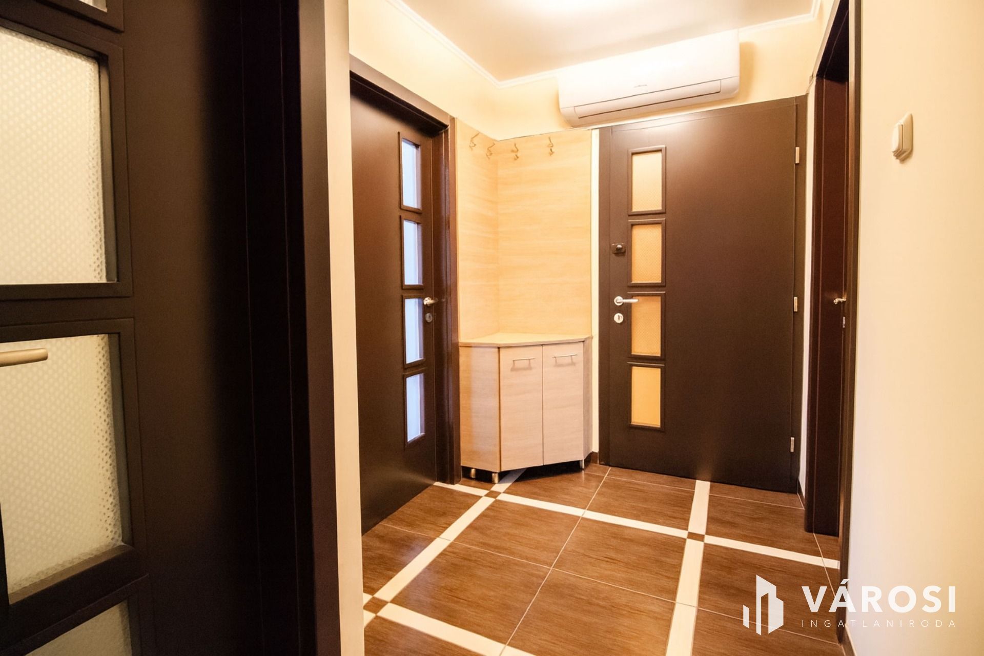 A lakás az első emeleten, a tetőtérben helyezkedik el, ahová kizárólag ehhez az ingatlanhoz tartozó, saját lépcsőházon keresztül juthatunk fel. A belső terek fiatalosak és rendkívül praktikus elrendezésűek: a közlekedőből nyílik a világos nappali és a modern konyha–étkező, amelyhez egy elegáns, kovácsoltvas korlátos erkély kapcsolódik. A két hálószoba jól szeparált, a külön WC és a mindkét irányból megközelíthető fürdőszoba pedig gondosan átgondolt, kényelmes megoldást nyújt a mindennapokban.