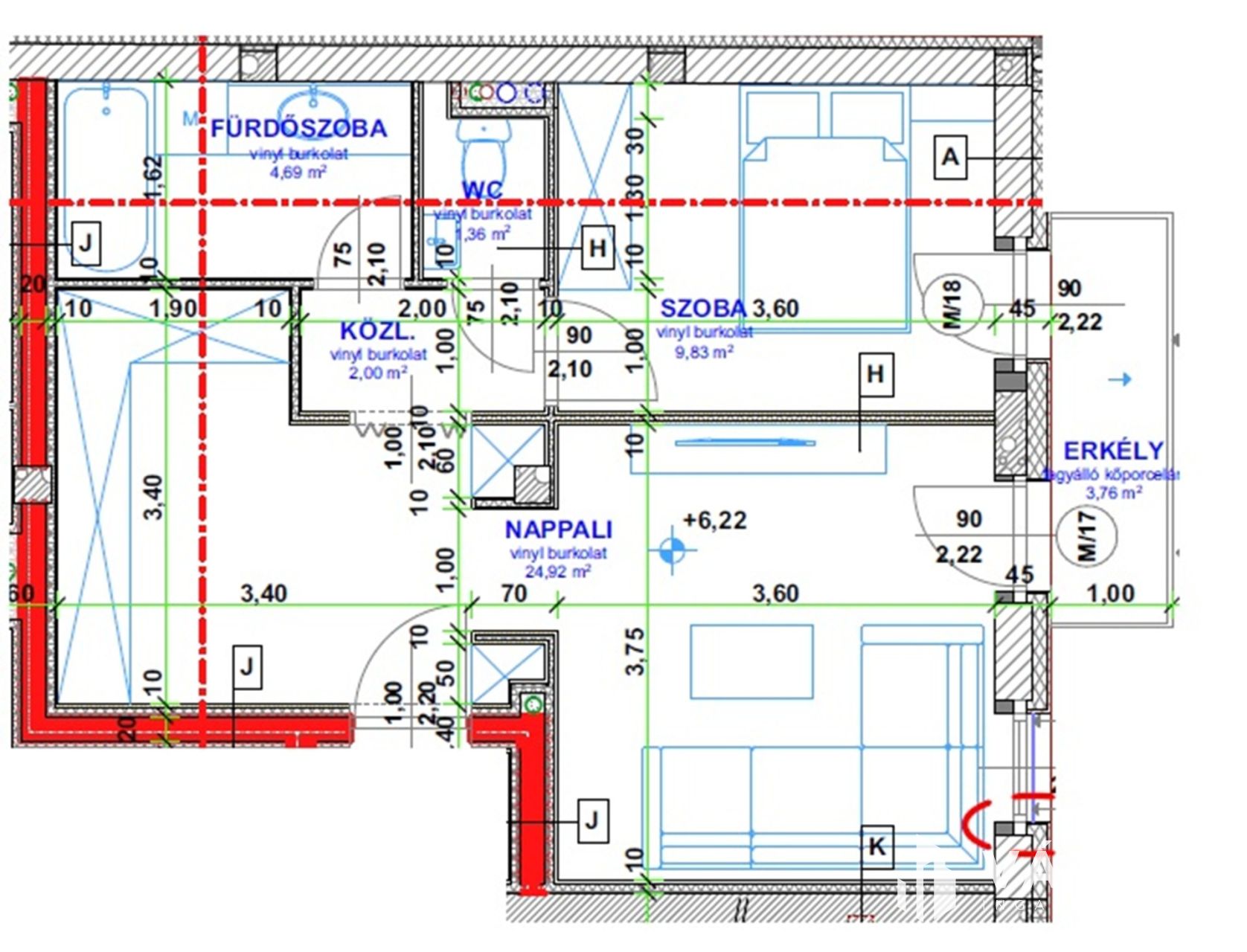 1. Lakás 82,17 m2 + 11,42 m2 (erkély)