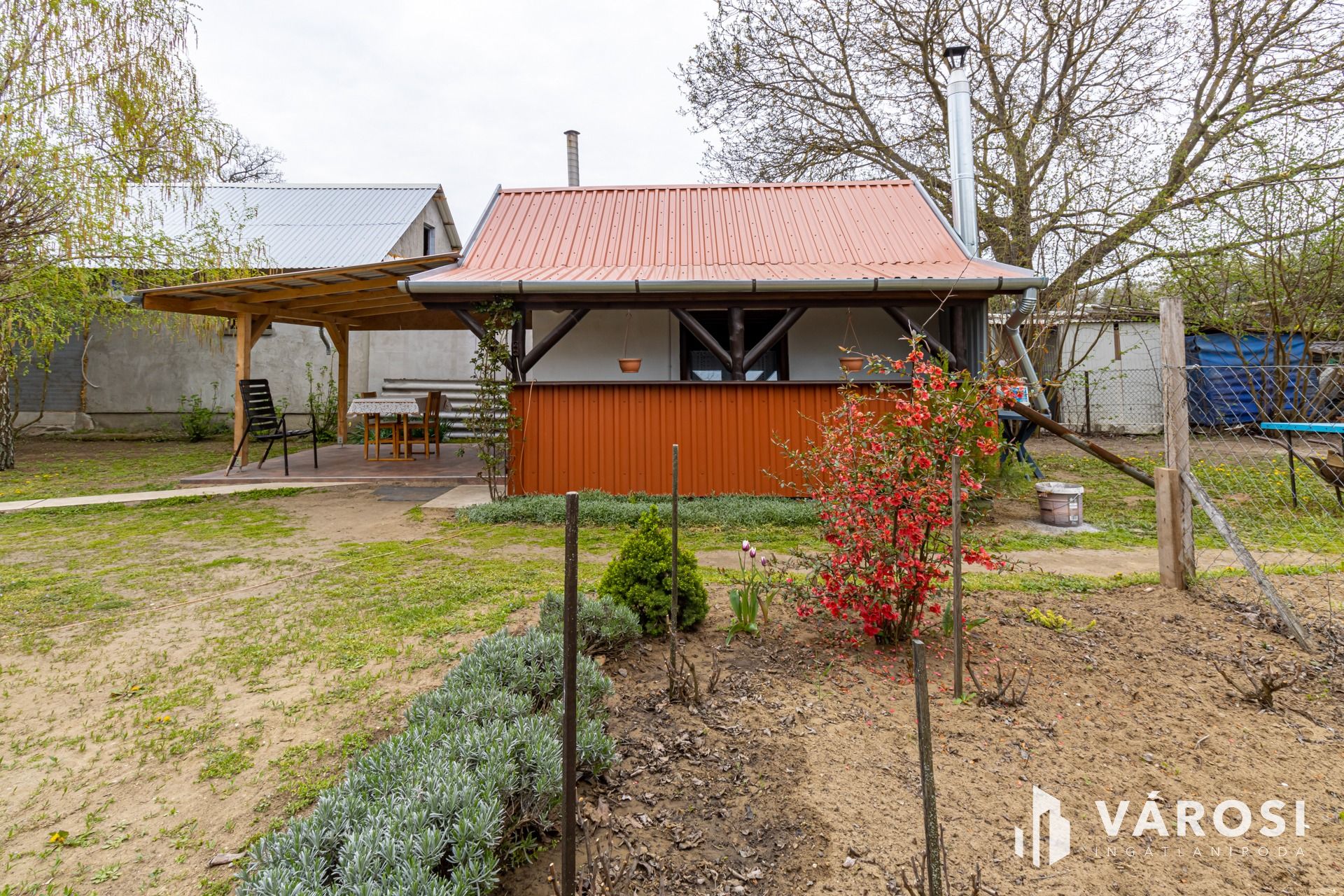 Teljes bútorzattal, kerti gépekkel, rotációs kapa, fűnyíró stb. kerül értékesítésre.