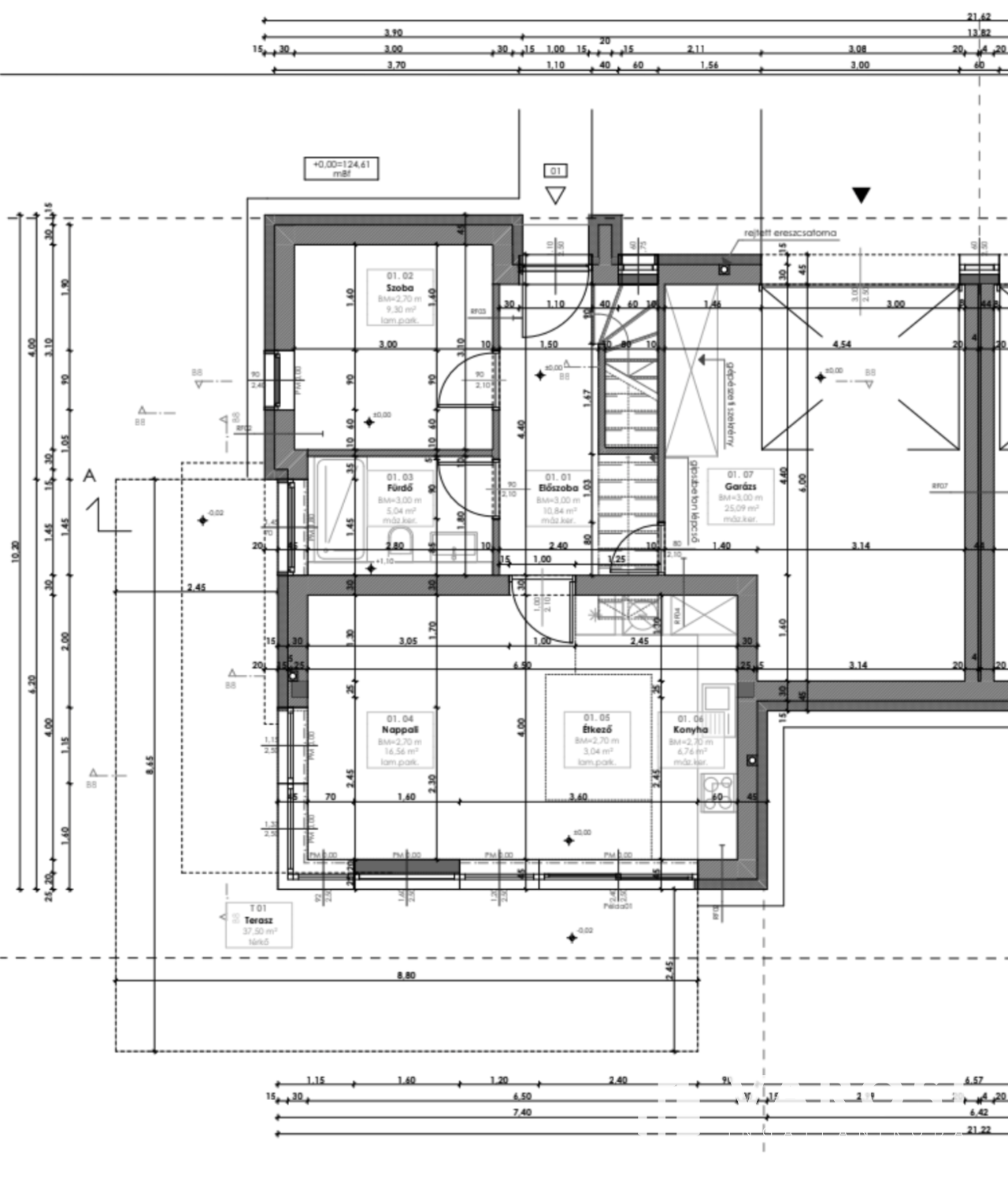 A ház földszintjén csak a garázsnál érintkezik a szomszéddal, így valódi szeparáltságot biztosít – szinte önálló családi házként élhető.
