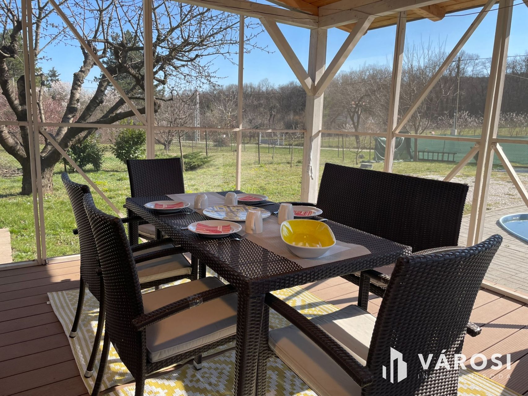 • Közvetlen kapcsolat a nappaliból és a konyhából egy fedett, szúnyoghálóval védett teraszra, amely jelentősen növeli a használható életteret