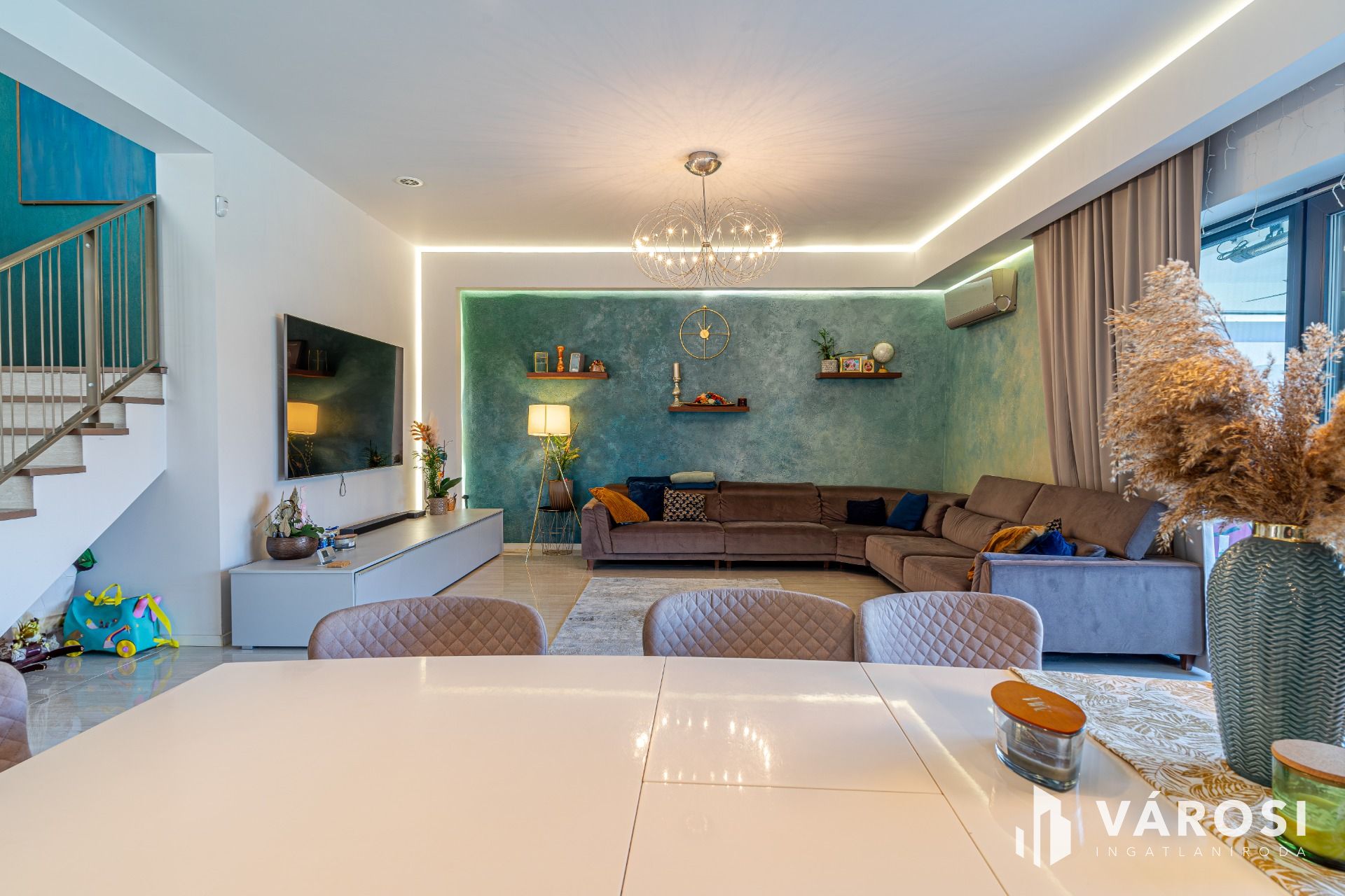 - amerikai konyhás nappali (52,15 m2, egyedi konyhabútorral, minőségi, beépített konyhagépekkel)