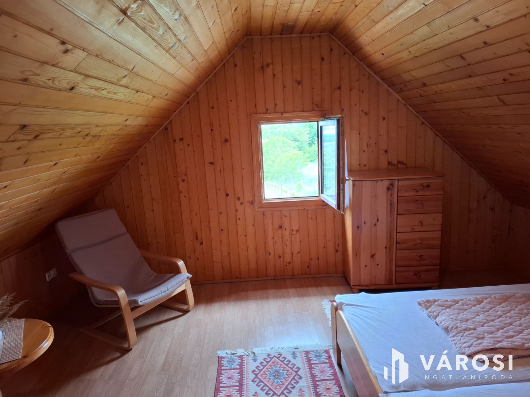 Csendes, zöldövezeti környezetben,3785 m²-es telken található ez a kétszintes, 90 m²-es nyaraló. A földszinten nappali–konyha–étkező, az emeleten két hálószoba, külön fürdő és WC szolgálja a kényelmet. Az ingatlan berendezett, fa zsalugáteres ablakokkal, vezetékes vízzel, szennyvíz-elhelyezéssel, új villamoshálózattal és 3 fázisú árammal rendelkezik.