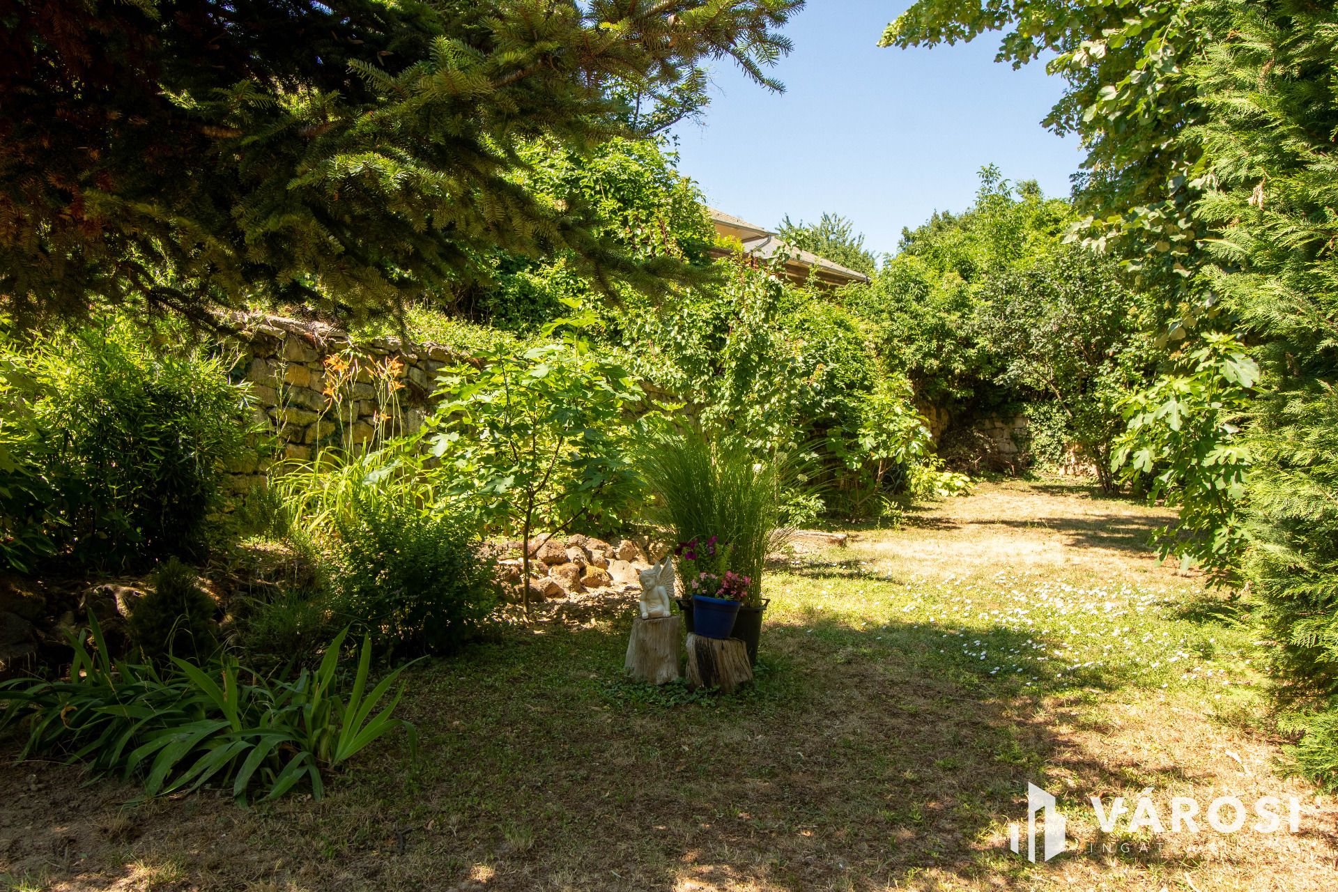 A házhoz tartozik egy pince, tárolóhelyiségek, valamint egy kis fedett terasz is. A kert rendezett, tele virágokkal, kerti kiülővel, a telekhatárt pedig egy körülbelül másfél méter magas, régi kövekből rakott kőfal szegélyezi, amely sajátos hangulatot kölcsönöz az udvarnak. Minden közmű be van vezetve, az ingatlan infrastruktúrája teljes. A környéken karnyújtásnyira megtalálható minden fontos szolgáltatás: bolt, iskola, óvoda, orvosi rendelő, tömegközlekedés – tényleg csak pár lépésre van minden.