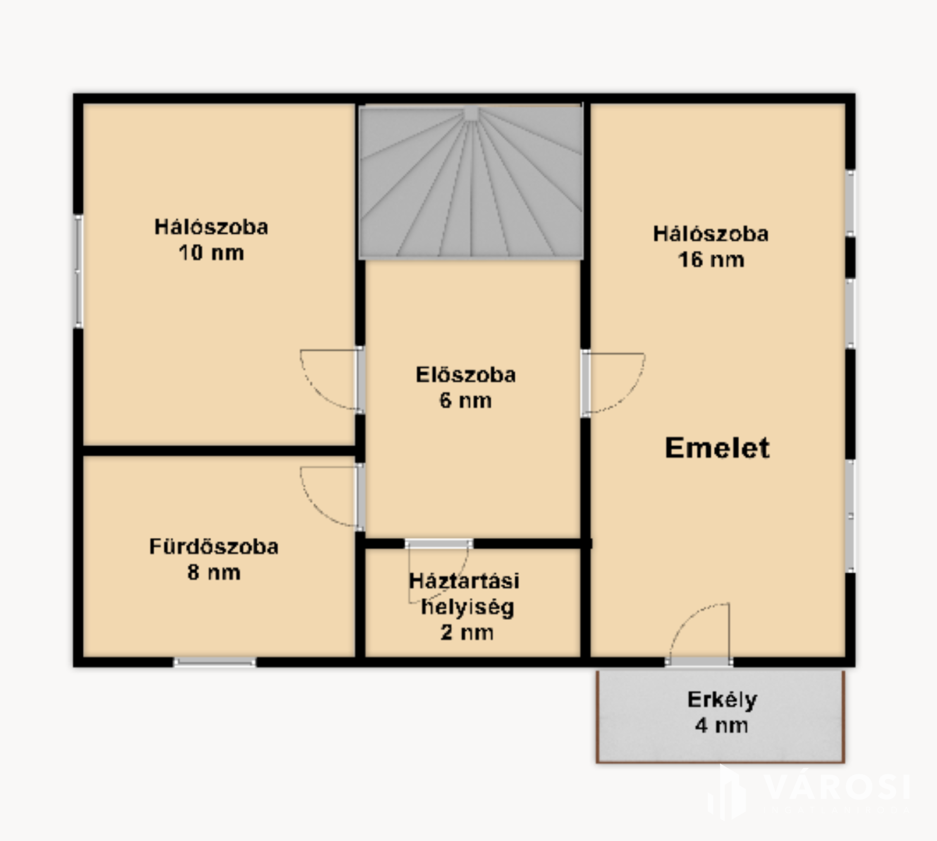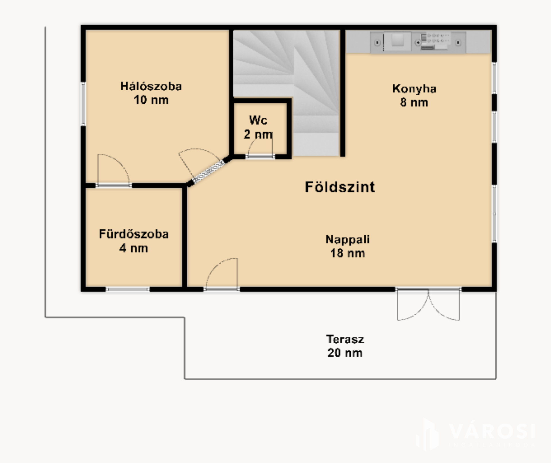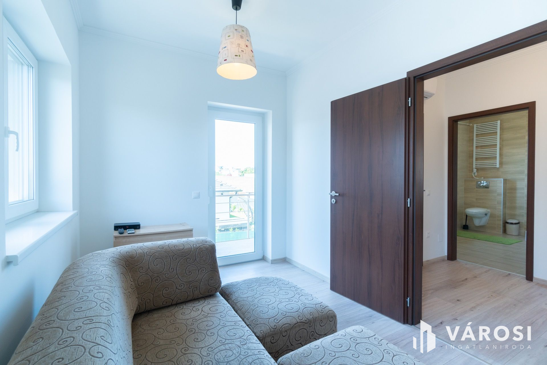 A nettó 84 m²-es két szintes épület földszintjén található az amerikai konyhás nappali (19 m² teraszkapcsolattal), egy hálószoba, amelyből egy kádas fürdőszoba nyílik és egy önálló mellékhelyiség. Az emeleten további két hálószoba (a nagyobbik erkélyes - 4 m²), egy hatalmas zuhanyzós fürdőszoba, egy előtér és a háztartási helyiség helyezkedik el.