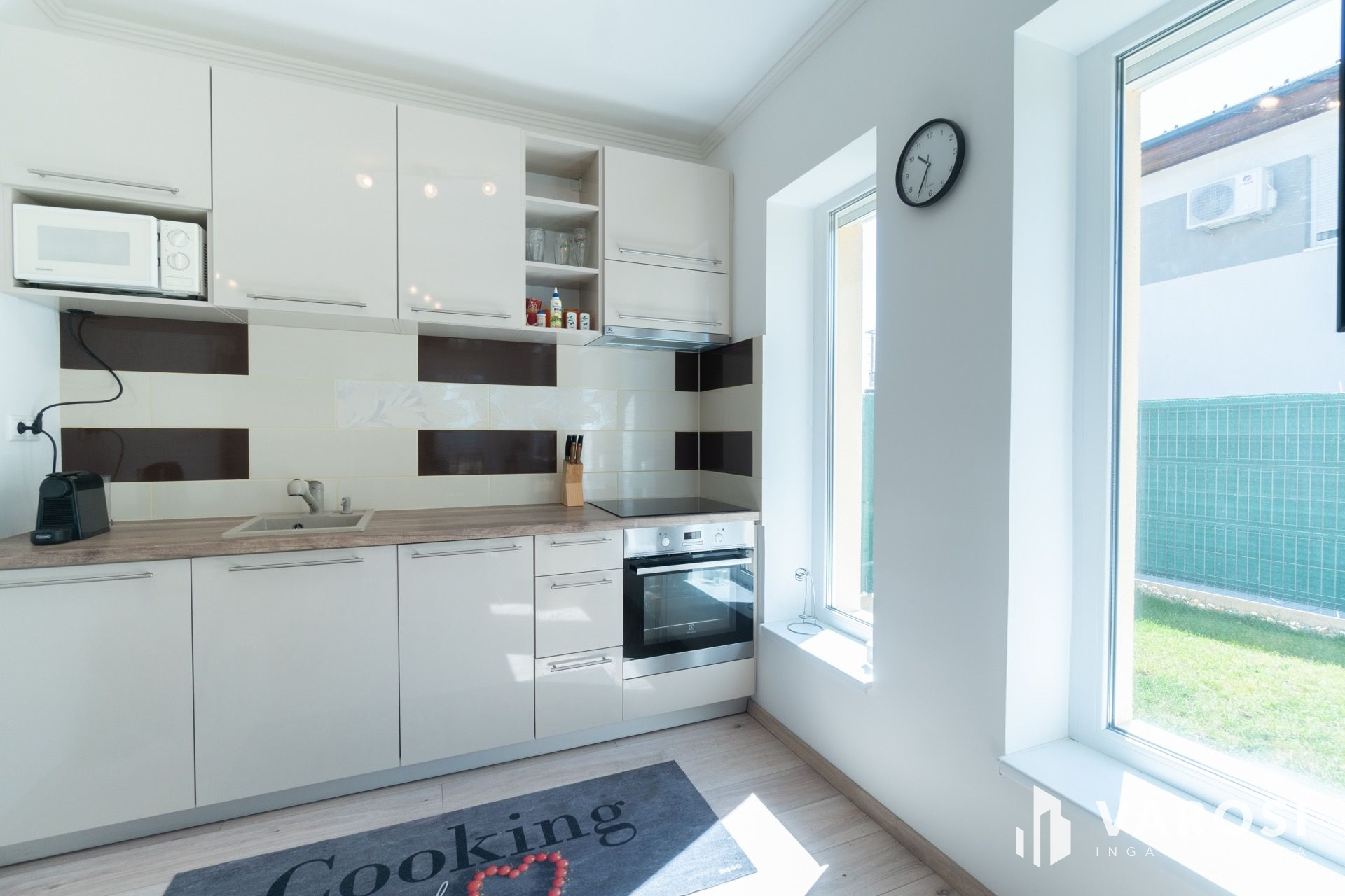 Az ingatlanhoz egyedi mérőórák (víz, gáz, villany) tartoznak, a fűtést egy Bosch kondenzációs gázkazán biztosítja padlófűtéses hőleadással. A tikkasztó nyári napokat a klíma teszi kellemessé, a biztonságot riasztó- és kamera rendszer garantálja. Az ikerházba a legmodernebb optikai kábellel van bekötve az internet, így garantáltan jó internetkapcsolattal rendelkezik, amennyiben a szórakozás vagy a munka azt megkívánja.